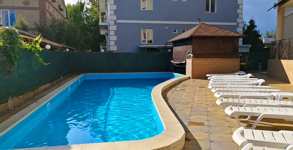 Номера очень чистые, оснащены всем необходим оборудованием. До моря-2 минуты. На территории гостиницы расположено большое разнообразие декоративных и хвойных растений. Также есть просторный бассейн, где можно с комфортом расслабиться после моря. А ещё бар с интересными напитками. Очень актуально в жару!