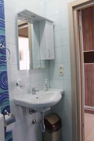 Санузел оборудован современной сантехникой с душевой кабиной. Горячая и холодная вода постоянно. К услугам отдыхающих индивидуальный фен.
