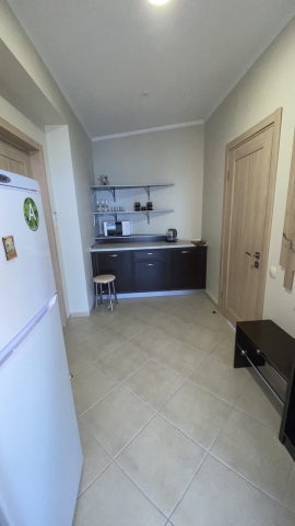 Прихожая оборудована зоной мини-кухни с холодильником, микроволновой печью, эл чайник, посудой. Просторная ванная комната оборудована выходом на балкон с прекрасным видом на бассейн отеля. Номер категории Апартаменты станет излюбленным местом отдыха и позволит насладиться предоставленными удобствами.